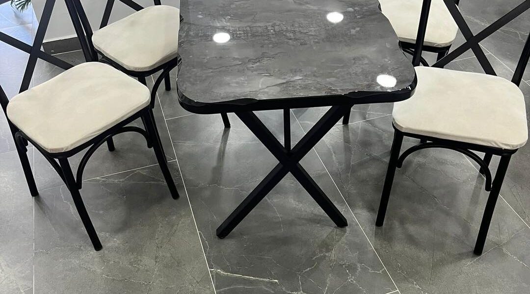 Mermer Görünümlü Modern Yemek Masası Takımı (1+4)