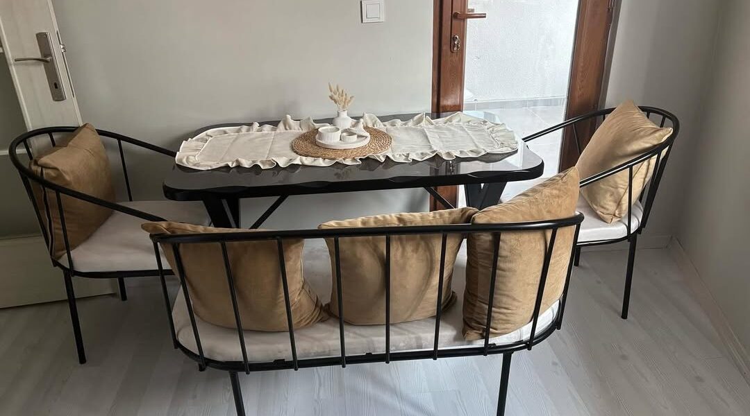 Geniş ve Samimi Sofralar: Geniş masa yüzeyi, kalabalık aile yemekleri, özel davetler ve çalışma saatleriniz için bolca alan sunar. Sandalyeler, geleneksel el işçiliğiyle üretilmiş sağlam iskeletlere ve konforu artıran detaylara sahiptir.