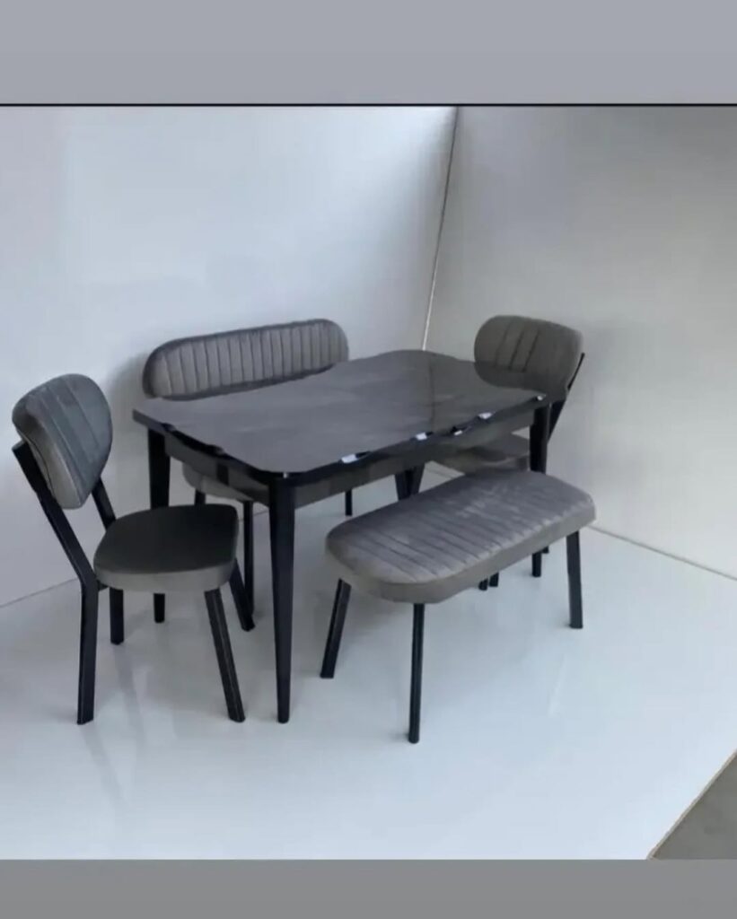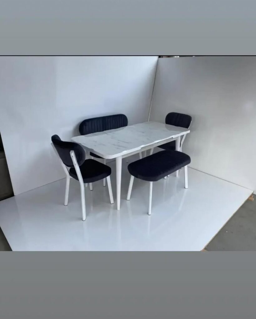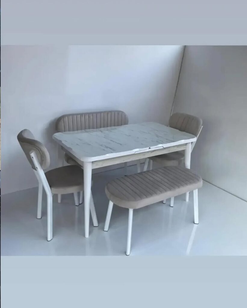 “Mutfağınızda mermer şıklığına yer açın! İzmit’in modern dairelerine çok yakışacak bu set, beyazın ferahlığını mermer desenin asaletiyle birleştiriyor. Bench (puf) tasarımı sayesinde dar alanlarda bile maksimum oturma kapasitesi sunarken, antrasit ve krem renk seçenekleriyle dekorasyonunuza tam uyum sağlar.”