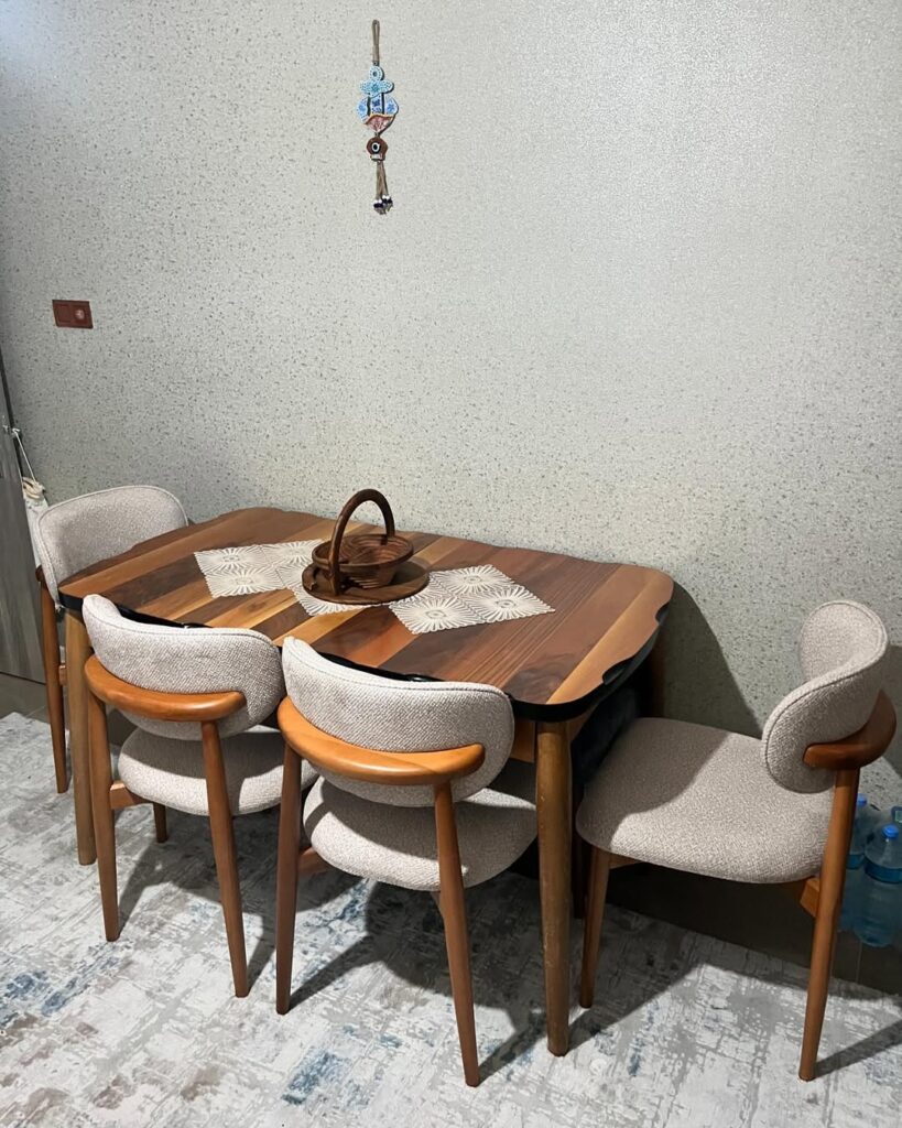 Küçük Alanlar, Büyük Stil: Şehir daireleri ve stüdyo yaşam alanları için özel olarak tasarlanan bu kompakt takım, dar alanları bile ferah ve davetkar bir yemek köşesine dönüştürüyor. Yerden tasarruf sağlayan akıllı tasarımıyla, mutfağınıza ya da salonunuza anında modern bir dokunuş katın.